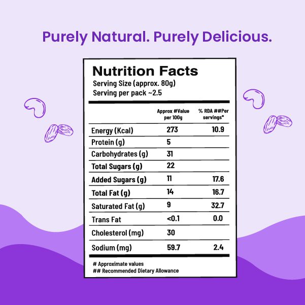 A2 Cow Milk, Kaju (Cashews), Kishmish (Raisins), Dhage Wali Mishri, Vanilla Extract, Guar Gum Powder.