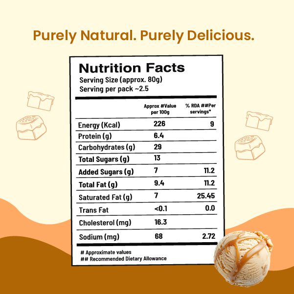 A2 Cow Milk, Dhage Wali Mishri, Caramel Sauce (Dhage Wali Mishri, Milk cream, Butter, Salt), Guar Gum Powder.